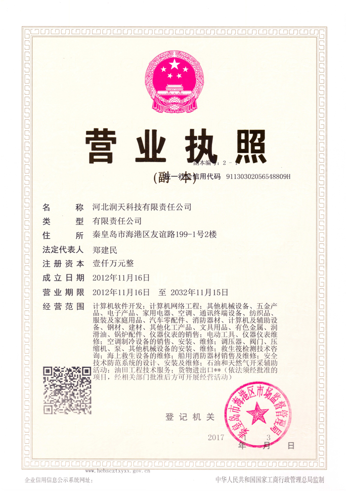 河北潤天科技有限責任公司始于2000年成立,公司以工業(yè)、應急救援產(chǎn)品貿(mào)易為基礎(chǔ),主營安全設備、安全裝備、儀器儀表的銷售、維修及檢驗檢測;公司通過了CMA、CNAS實驗室認證及特種設備檢驗檢測機構(gòu)核準以...[更多]